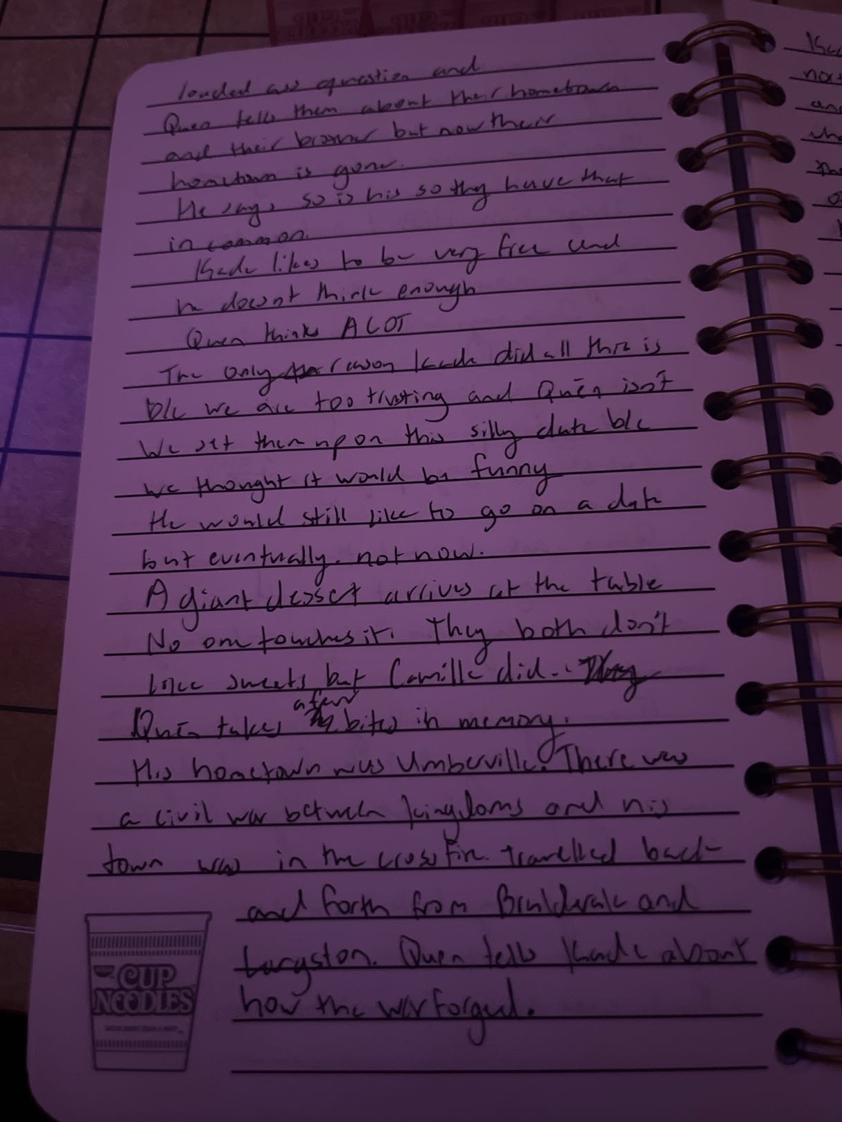 - Kade grabs the lava cake and Quén grabs the remaining drinks