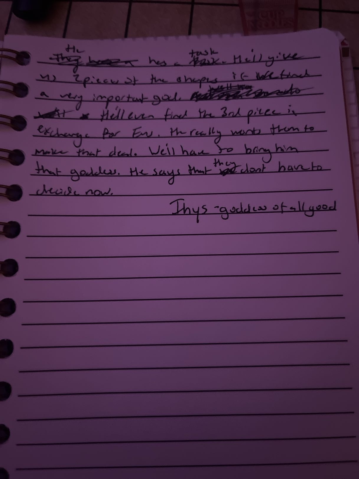 - Ozwin is curious as to who this “Kade” person is, and Quén explains that he’s a purple tiefling who “doesn’t take things seriously enough”